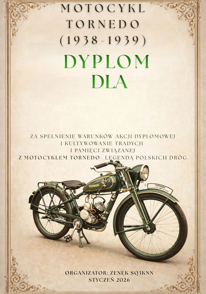 Kol. Zenek SQ3KNN jest organizatorem akcji dyplomowej poświęconej motocyklowi TORNEDO. Ma na celu kultywowanie tradycji i pamięci o tej wyjątkowej maszynie, oraz popularyzację wiedzy o polskich osiągnięc